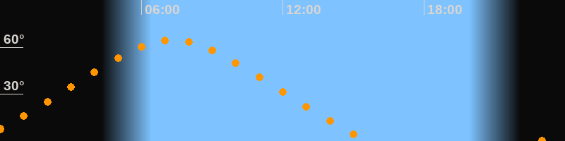 | Höchster Stand (Kulmination) | 07:19 Uhr (h = 64,4°) |