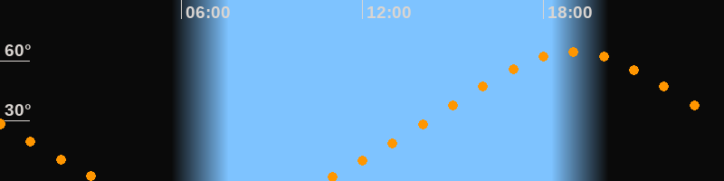 | Höchster Stand (Kulmination) | 18:59 Uhr (h = 64,4°) |