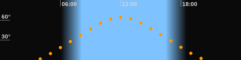 | Höchster Stand (Kulmination) | 12:02 Uhr (h = 64,4°) |