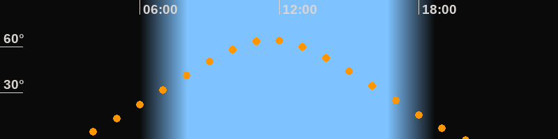 | Höchster Stand (Kulmination) | 11:38 Uhr (h = 64,4°) |