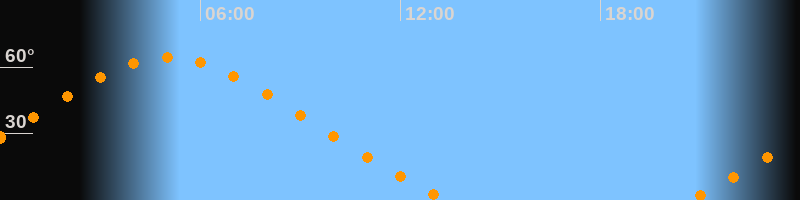 | Untergang | 13:25 Uhr im Nordwesten (αAz = 313,1°) |