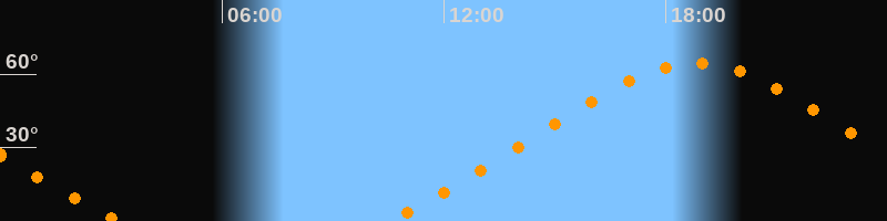 | Höchster Stand (Kulmination) | 18:48 Uhr (h = 64,4°) |