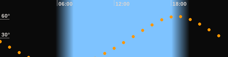 | Höchster Stand (Kulmination) | 18:33 Uhr (h = 64,4°) |