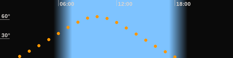 | Höchster Stand (Kulmination) | 09:57 Uhr (h = 64,4°) |