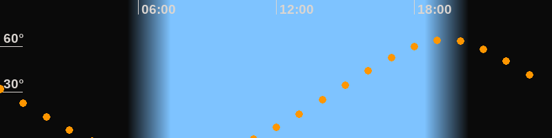 | Höchster Stand (Kulmination) | 19:21 Uhr (h = 64,4°) |
