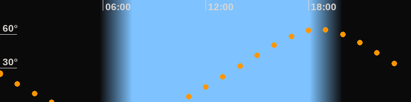 | Höchster Stand (Kulmination) | 18:38 Uhr (h = 64,4°) |