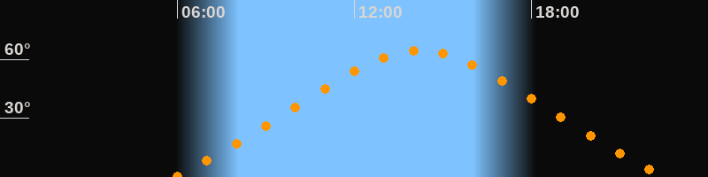 | Höchster Stand (Kulmination) | 14:13 Uhr (h = 64,4°) |