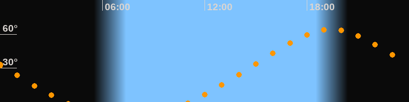 | Höchster Stand (Kulmination) | 19:26 Uhr (h = 64,4°) |