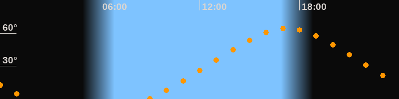 | Höchster Stand (Kulmination) | 17:15 Uhr (h = 64,4°) |