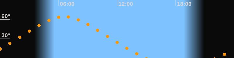 | Höchster Stand (Kulmination) | 06:34 Uhr (h = 64,4°) |