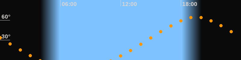 | Höchster Stand (Kulmination) | 19:30 Uhr (h = 64,4°) |