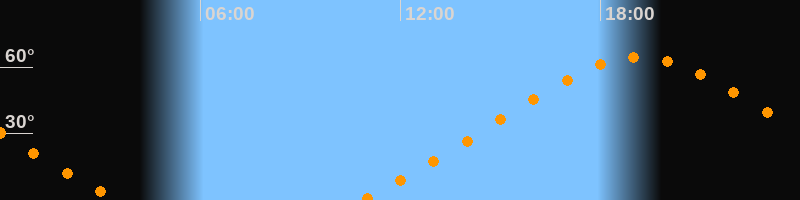 | Höchster Stand (Kulmination) | 19:10 Uhr (h = 64,4°) |