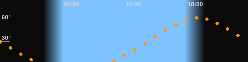 | Höchster Stand (Kulmination) | 19:06 Uhr (h = 64,4°) |