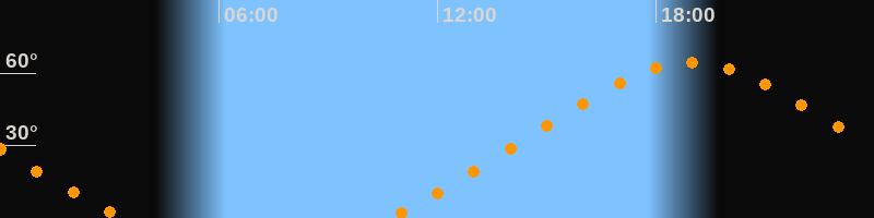 | Höchster Stand (Kulmination) | 18:58 Uhr (h = 64,4°) |