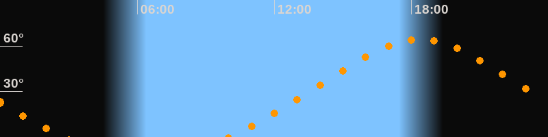 | Höchster Stand (Kulmination) | 18:23 Uhr (h = 64,4°) |