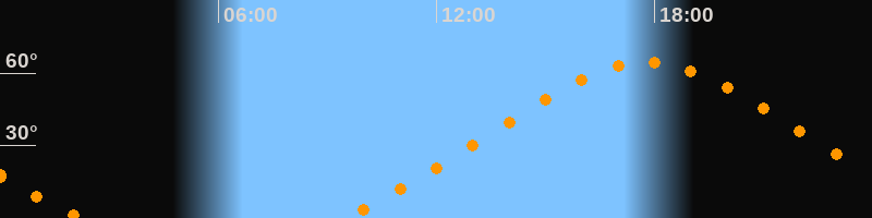 | Höchster Stand (Kulmination) | 17:47 Uhr (h = 64,4°) |