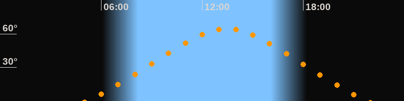 | Höchster Stand (Kulmination) | 13:28 Uhr (h = 64,4°) |