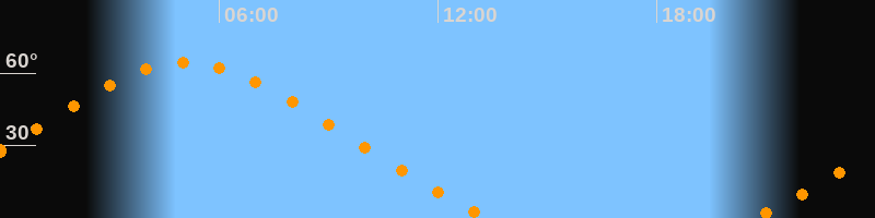 | Höchster Stand (Kulmination) | 05:05 Uhr (h = 64,4°) |
