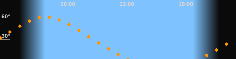 | Untergang | 13:01 Uhr im Nordwesten (αAz = 313,1°) |