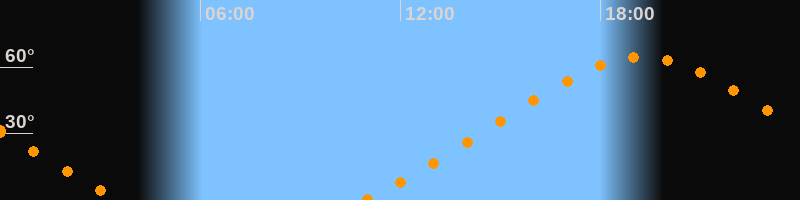 | Höchster Stand (Kulmination) | 19:15 Uhr (h = 64,4°) |