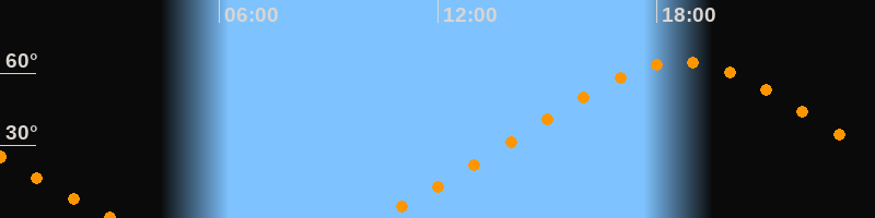 | Aufgang | 10:16 Uhr im Nordosten (αAz = 46,9°) |
