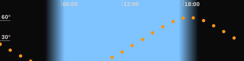 | Höchster Stand (Kulmination) | 18:36 Uhr (h = 64,4°) |