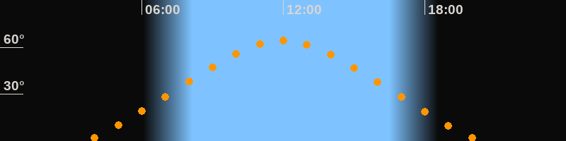 | Höchster Stand (Kulmination) | 11:58 Uhr (h = 64,4°) |