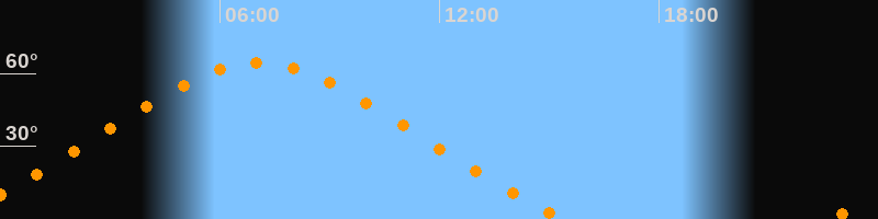 | Höchster Stand (Kulmination) | 07:04 Uhr (h = 64,4°) |