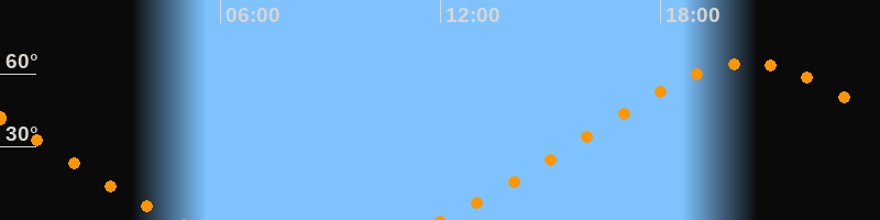 | Aufgang | 11:59 Uhr im Nordosten (αAz = 46,9°) |