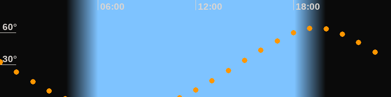 | Höchster Stand (Kulmination) | 19:24 Uhr (h = 64,4°) |
