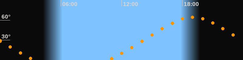 | Höchster Stand (Kulmination) | 19:00 Uhr (h = 64,4°) |