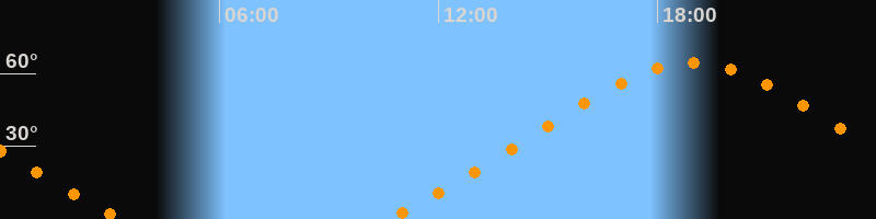 | Höchster Stand (Kulmination) | 18:56 Uhr (h = 64,4°) |