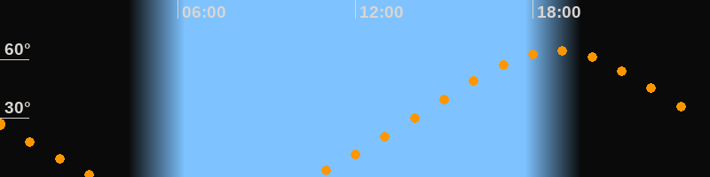 | Höchster Stand (Kulmination) | 18:48 Uhr (h = 64,4°) |