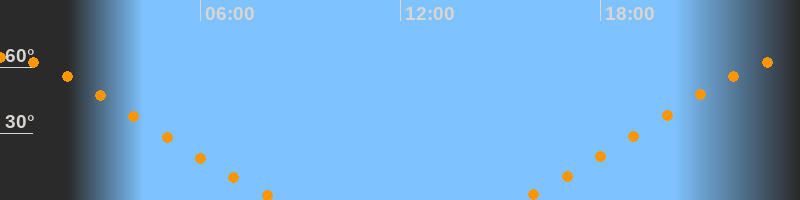 | Untergang | 08:23 Uhr im Nordwesten (αAz = 313,1°) |