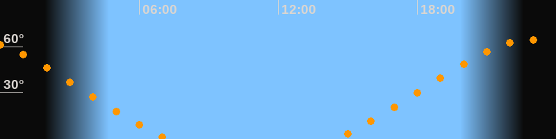 | Aufgang | 14:25 Uhr im Nordosten (αAz = 46,9°) |