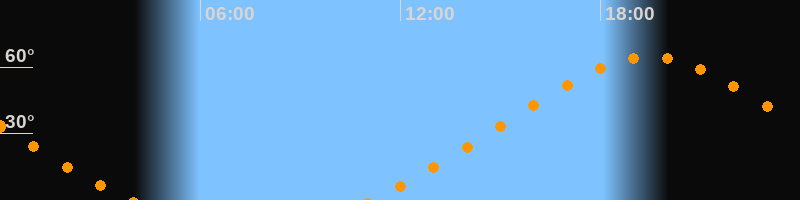 | Höchster Stand (Kulmination) | 19:29 Uhr (h = 64,4°) |