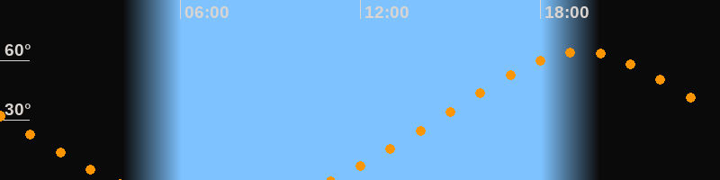 | Höchster Stand (Kulmination) | 19:22 Uhr (h = 64,4°) |