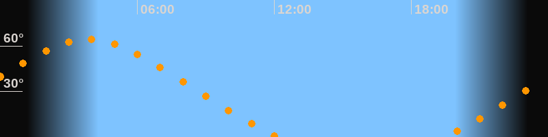 | Untergang | 12:13 Uhr im Nordwesten (αAz = 313,1°) |