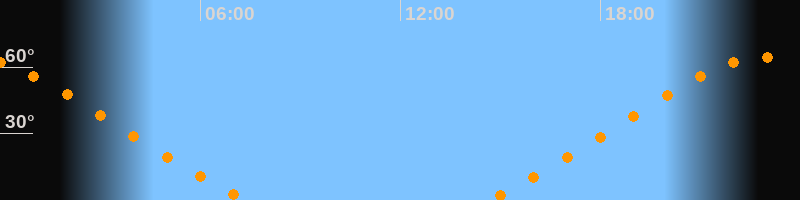 | Höchster Stand (Kulmination) | 22:59 Uhr (h = 64,4°) |
