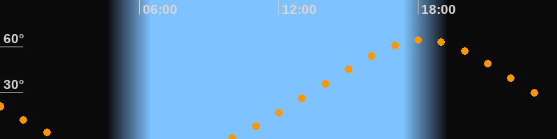 | Höchster Stand (Kulmination) | 18:12 Uhr (h = 64,4°) |