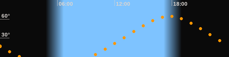 | Höchster Stand (Kulmination) | 17:44 Uhr (h = 64,4°) |