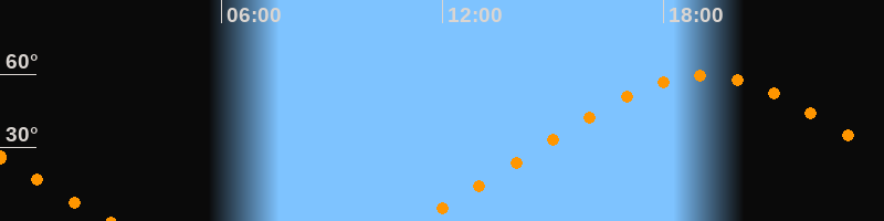 | Höchster Stand (Kulmination) | 19:06 Uhr (h = 59,5°) |