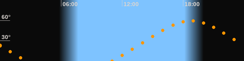 | Höchster Stand (Kulmination) | 18:46 Uhr (h = 59,5°) |