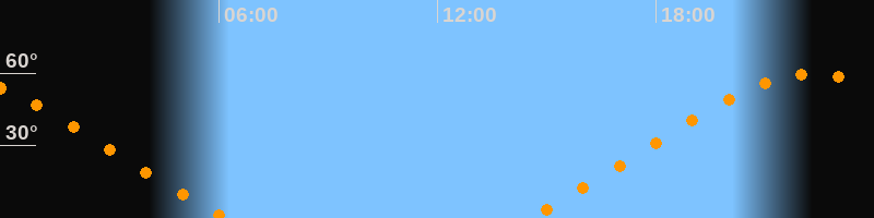| Aufgang | 14:29 Uhr im Nordosten (αAz = 56°) |