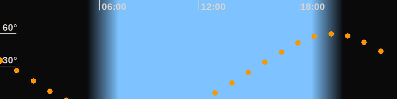 | Aufgang | 12:12 Uhr im Nordosten (αAz = 56°) |