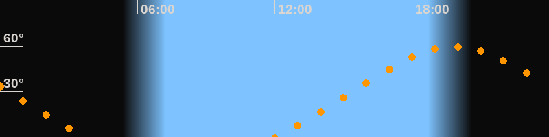 | Höchster Stand (Kulmination) | 19:51 Uhr (h = 59,5°) |
