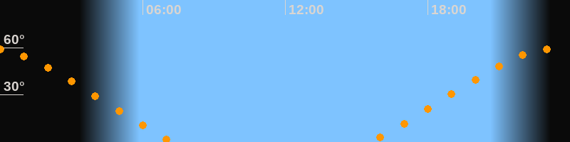 | Untergang | 07:18 Uhr im Nordwesten (αAz = 304°) |