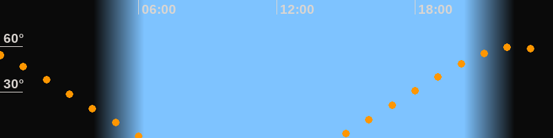 | Untergang | 06:15 Uhr im Nordwesten (αAz = 304°) |
