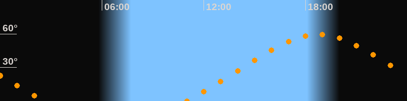 | Höchster Stand (Kulmination) | 18:45 Uhr (h = 59,5°) |