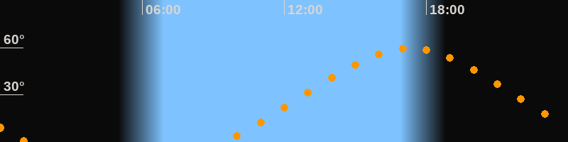 | Höchster Stand (Kulmination) | 17:17 Uhr (h = 59,5°) |